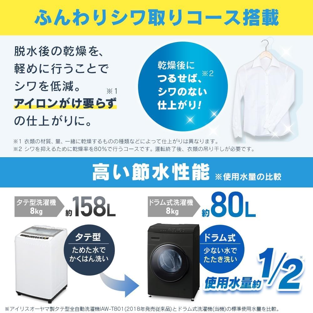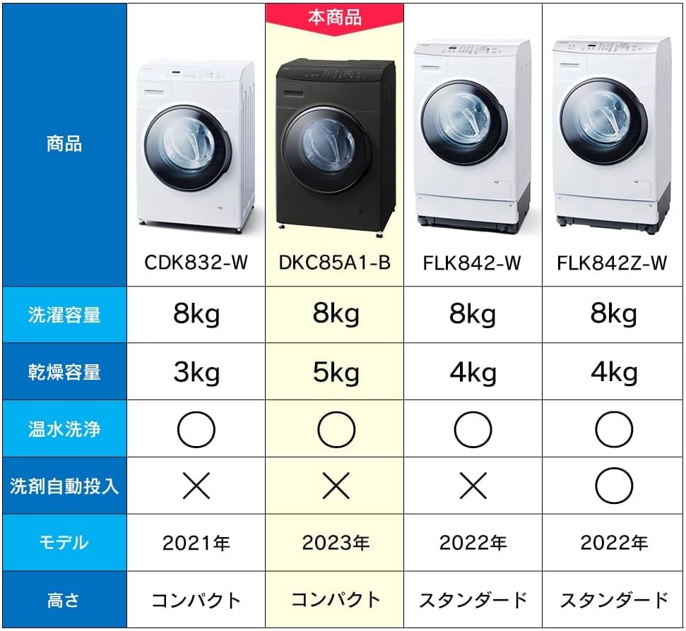 【限定カラー】ドラム式洗濯乾燥機 洗濯8kg 乾燥5kg 幅59.5cm 【じっくり乾燥&温水洗浄】乾燥力にこだわる方に最適な60℃温水活性洗剤 4人分の衣類を乾燥1回分 ブラック DKC85A1 -B